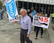 Members of Consumer Watchdog went to the Blue Shields of California office in Los Angeles on Tuesday to support "Yes on Proposition 45."